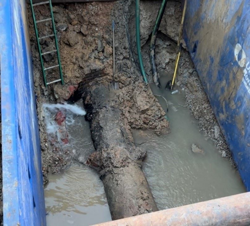 Excavation began in the area around the leak on Monday, July 3, 2023, to expose the pipelines and determine which of the pipes were leaking, the location of any leaks and severity.